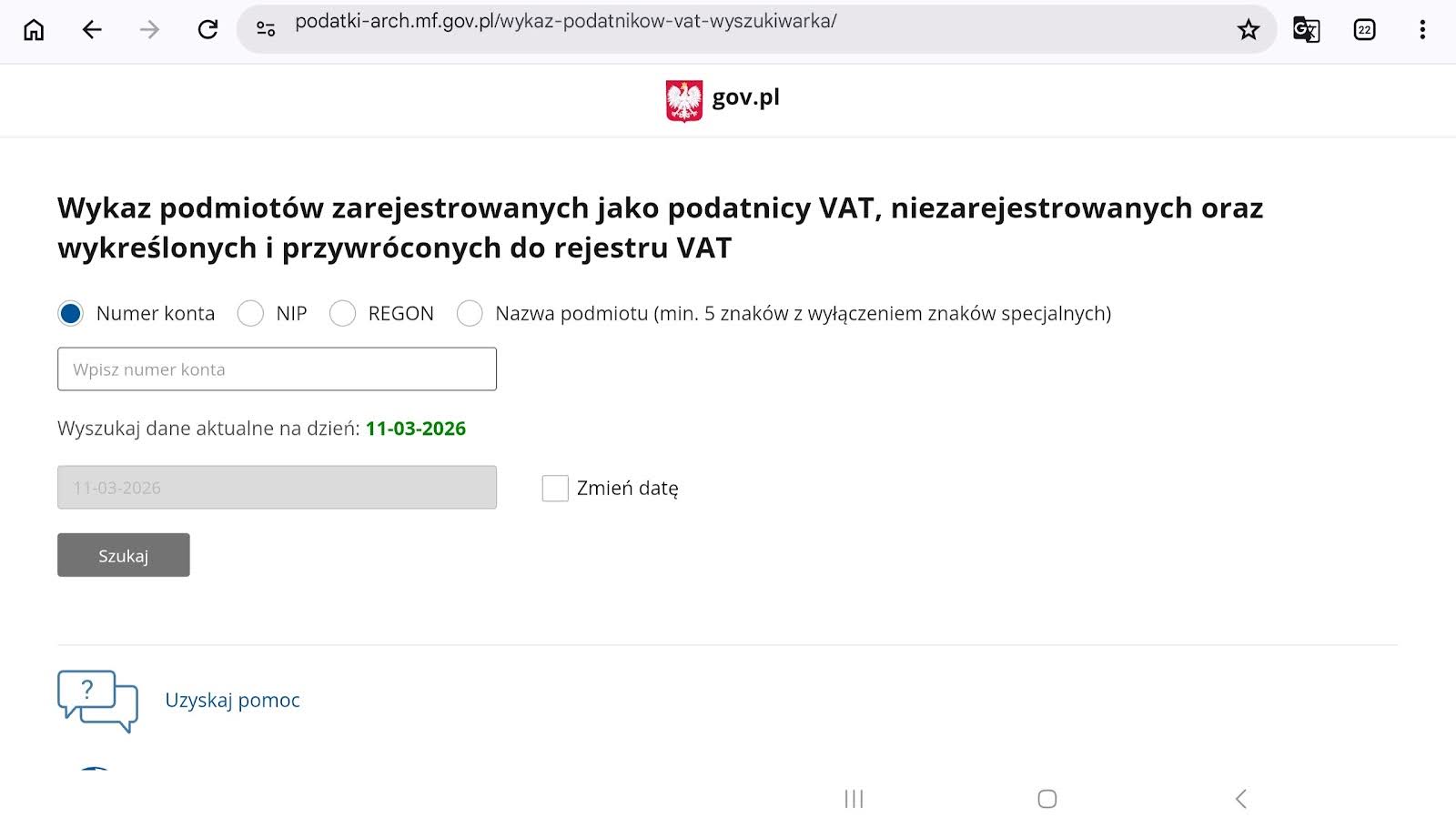 Co ważne, należy nie tylko sprawdzić nazwę, czy adres firmy, na której konto przekazujesz środki, konieczne jest zweryfikowanie numeru konta, na który dokonujesz płatności, czy konkretnie ten rachunek figuruje na białej liście.