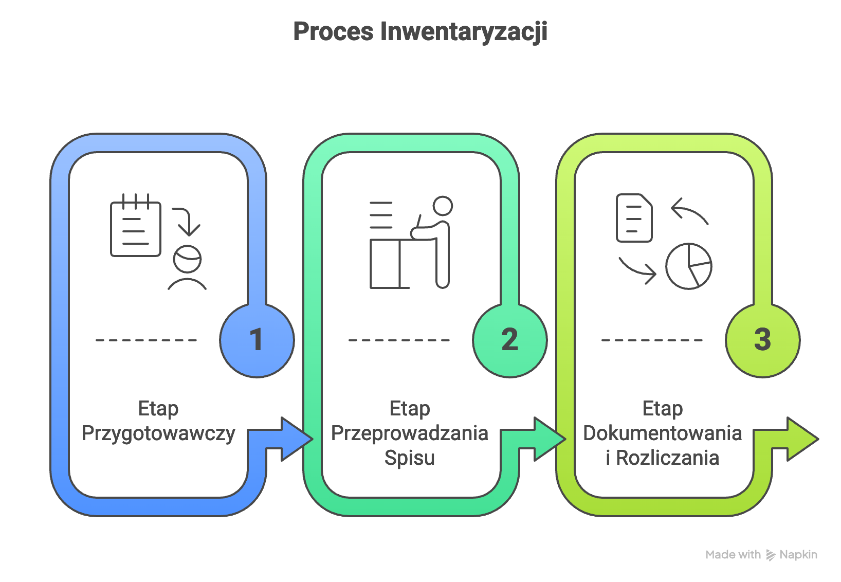 Etapy przeprowadzenia inwentaryzacji obejmują trzy główne działania: